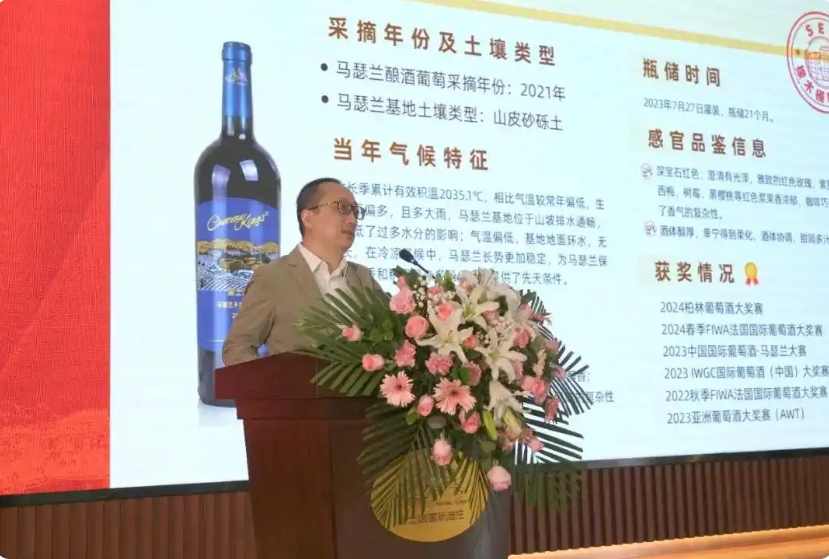會(huì)上,金士通國際酒莊常務(wù)副總經(jīng)理兼總工程師余東亮就馬瑟蘭的品種起源、全球種植趨勢(shì)及未來發(fā)展?jié)摿M(jìn)行了深度解析,詳細(xì)講述了馬瑟蘭之父保羅·特魯爾的培育歷程,以及這一品種如何憑借其獨(dú)特的抗病性和釀造潛力,成為全球釀酒師的新寵,并分享了酒莊在馬瑟蘭葡萄培育方面的專業(yè)經(jīng)驗(yàn)與創(chuàng)新成果。