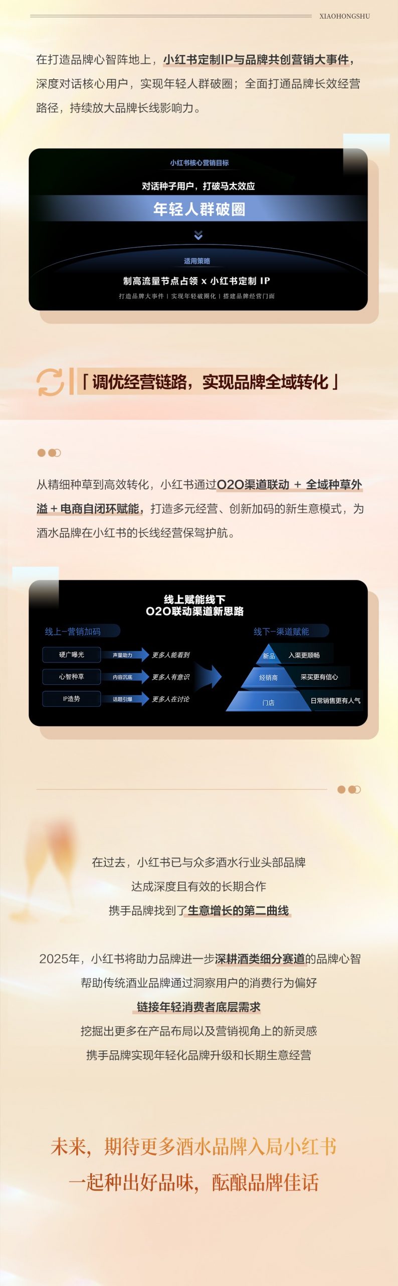 其中,小紅書也在糖酒會現(xiàn)場高光亮相并同期舉辦了「新風(fēng)·醴宴」小紅書商業(yè)酒水行業(yè)尊享會,為酒水行業(yè)下多元賽道的快速發(fā)展注入新動能,帶來了多維度的趨勢洞察以及科學(xué)有效的平臺經(jīng)營方法論,引發(fā)眾多酒水品牌關(guān)于未來經(jīng)營鏈路的深刻思考。