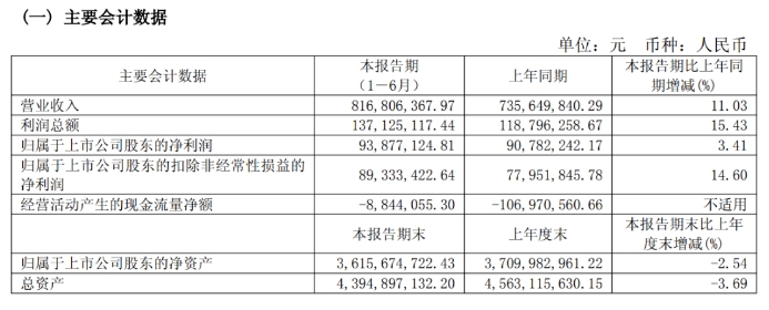 8月21日,稽山(601579.SH)發布2025年半年報。報告期內公司實現營業收入8.17億元,同比增長11.03%;凈利潤9387.71萬,同比增長3.41%。