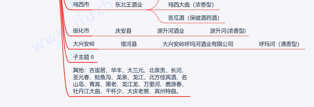 ?其他:古崖居、華豐、大三元、北泉貢、長河、圣元春、鯰魚溝、龍泉、龍江、北方佳賓酒、名山島、青賓、黑老、龍江龍、萬里河、鹿源春、牡丹江大曲、千杯少、大慶老窖、賓州特曲。