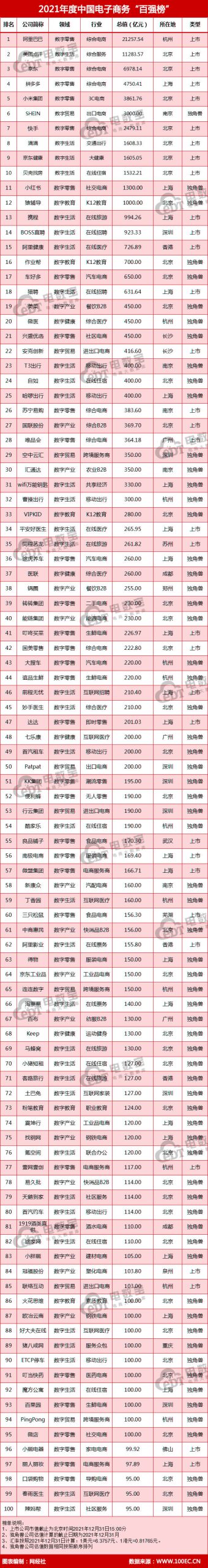 《2021年度中國電子商務“百強榜”》完整榜單如下: