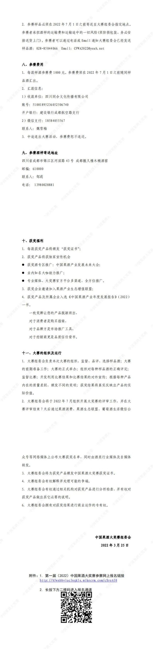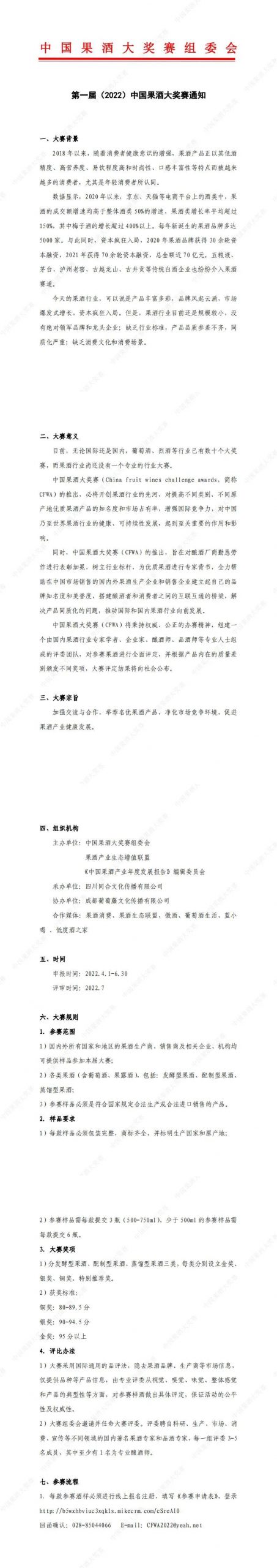第一屆(2022)中國果酒大獎賽(CFWA)通知原文: