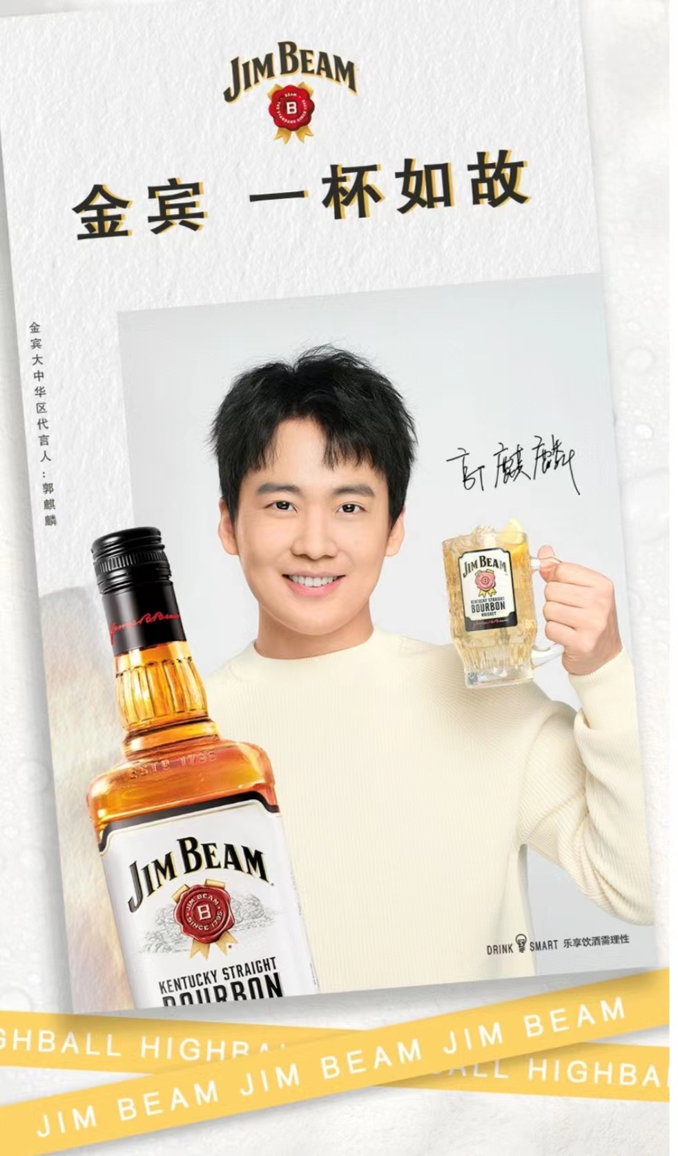 美國(guó)波本威士忌品牌金賓(Jim beam)正式發(fā)布大中華區(qū)首位代言人郭麒麟。