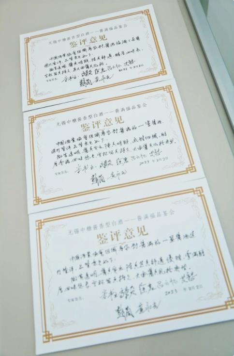 在醬滿福品鑒環(huán)節(jié),專家們通過色、香、味、格四個方面分別對喜醬、藍醬、紫醬三款“醬滿福”白酒進行了品鑒,并就口感、工藝、年份、勾調(diào)等方面對每一款酒進行了專業(yè)點評。最后形成“醬香突出,優(yōu)雅細膩,酒體醇厚豐滿,后味長,空杯留香持久”的產(chǎn)品風(fēng)格評價,并為“醬滿福”酒簽發(fā)品鑒證書,現(xiàn)場專家依次簽名認可。