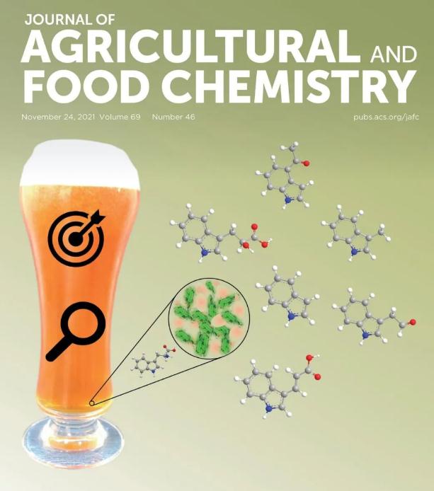不過,益生菌在酒精飲品中是否能發(fā)揮其健康功效,在此前還沒有進(jìn)行研究與探索;也尚未有益生菌發(fā)酵啤酒的代謝組特征差異的研究。因此,劉紹泉教授團(tuán)隊在產(chǎn)業(yè)化益生菌啤酒的同時,還對益生菌啤酒的健康功效進(jìn)行進(jìn)一步的分析與臨床試驗。通過循證研究,益生菌發(fā)酵啤酒能產(chǎn)生更多的活性氨基酸代謝產(chǎn)物和多酚含量,具有更高的抗氧化活性。相關(guān)成果以“采用液相色譜高分辨率質(zhì)譜法靶向和非靶向代謝組學(xué)研究益生菌發(fā)酵無酒花啤酒中的氨基酸和生物活性代謝物”為題,作為封面論文發(fā)表在國際著名食品期刊《Journal of Agricultural and Food Chemistry》。