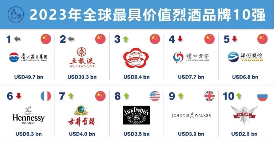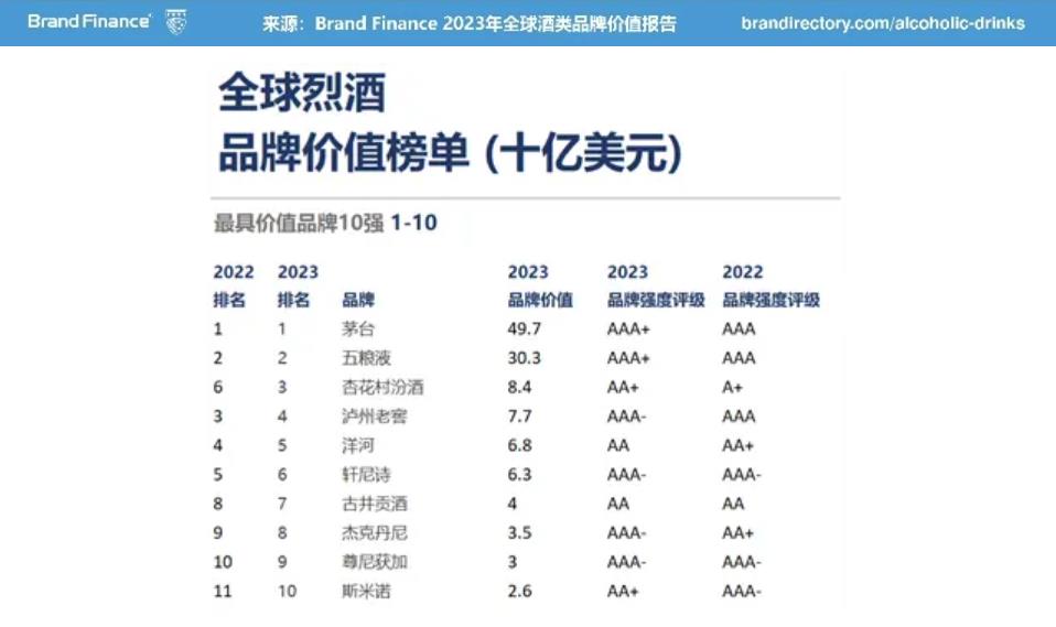 高端白酒品牌茅臺(品牌價值增長16%,達到497億美元)連續第八年成為世界上最有價值的烈酒品牌。