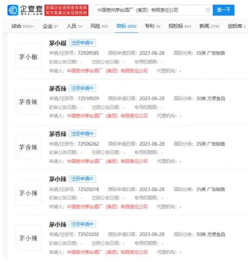 從市場渠道獲悉,茅臺申請注冊了“茅小椒”“茅香辣”“茅小辣”商標,將推出“茅臺辣椒醬”產品。據酒業評論人肖竹青對藍鯨財經記者透露,此前在茅臺品嘗過一款貴州辣椒醬,是利用茅臺發酵技術結合貴州特產辣椒醬工藝相結合研發的新項目,預測茅臺辣椒醬在不遠的將來也會實現產業化。