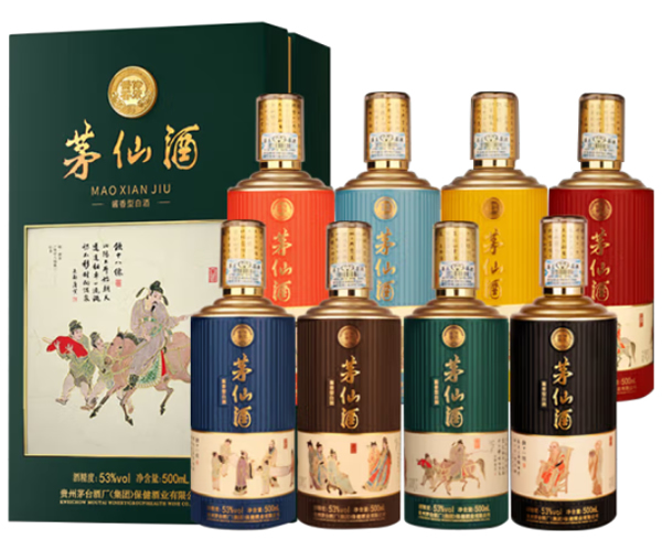 茅仙酒(飲中八仙)為醬香型白酒,共有8個系列,每個系列均將“飲中八仙”文化注入其中,酒瓶包裝上別出心裁地放入八位唐代詩人的詩句與形象,將中國白酒文化與傳統文化結合在一起。