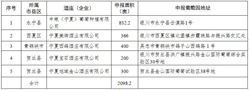近日,賀蘭山東麓園區管委會發布《關于開展2023年寧夏國家葡萄及葡萄酒產業開放發展綜合試驗區高標準葡萄園評選的通知》,經葡萄園主體酒莊(企業)申報,各市、縣(區)自評推選,專家組實地評審、賀蘭山東麓園區黨工委會議研究,最終認定2023年寧夏國家葡萄及葡萄酒產業開放發展綜合試驗區高標準葡萄園為5家,公示名單如下。