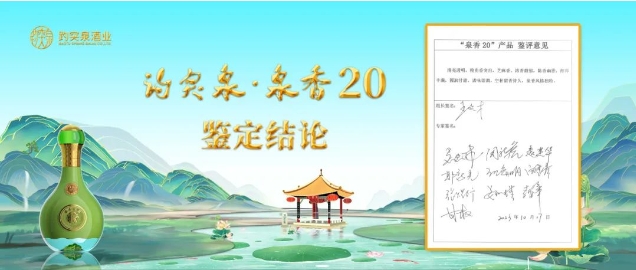 主持人宣讀由中國白酒行業專家組成的鑒定小組對趵突泉·泉香20的一致評定:“清亮透明,糧曲香突出,芝麻香、濃香馥郁,陳香幽雅,醇厚豐滿,圓潤甘甜,諸味諧調,空杯留香持久,泉香風格獨特。”