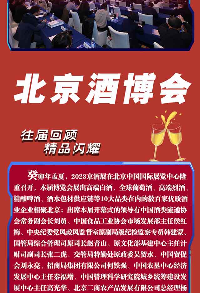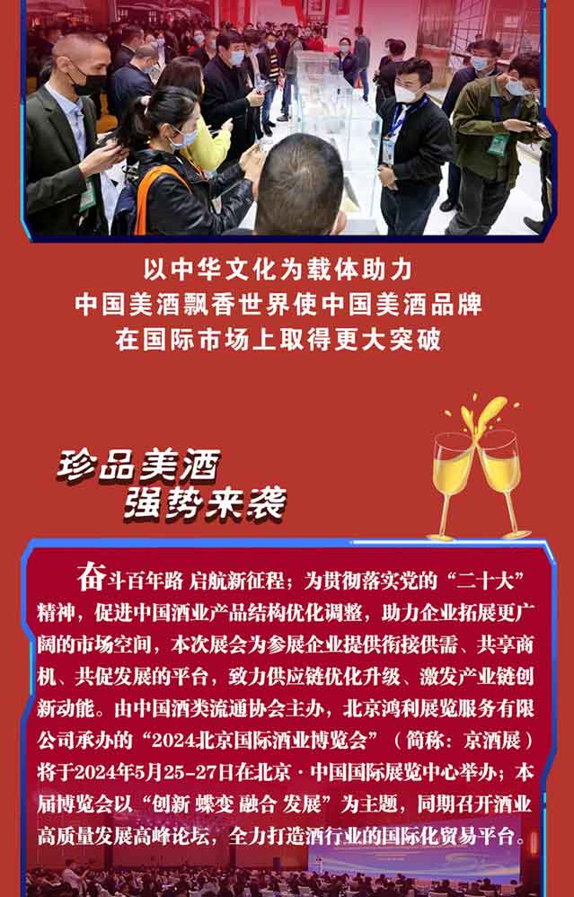 2024年以“創(chuàng)新·蝶變·融合·發(fā)展”為主題的北京國際酒業(yè)博覽會將于2024年5月25-27日,在北京·中國國際展覽中心朝陽館(北京市朝陽區(qū)北三環(huán)東路6號)舉辦。