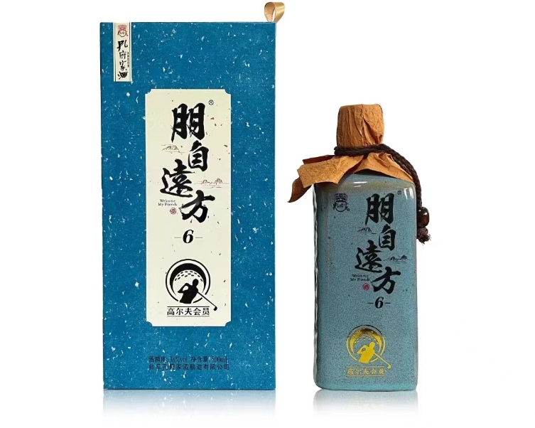 孔府家酒·朋自遠方·高爾夫會員(定制酒),濃香型白酒,酒精度:38%vol;規格500ml;