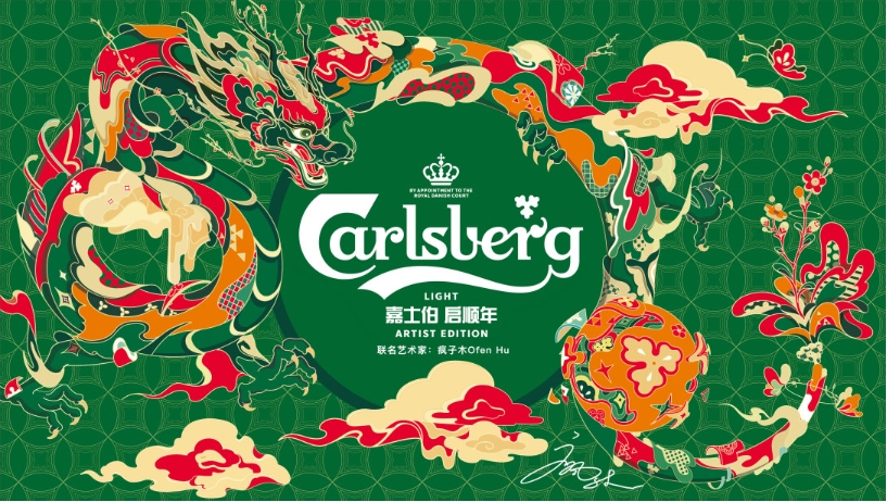 龍年新春來臨之際,嘉士伯啤酒聯和中國知名插畫藝術家胡云峰,推出龍年啟順年新春裝啤酒,分為三種款式規格:玻璃瓶、鋁瓶、鋁罐。