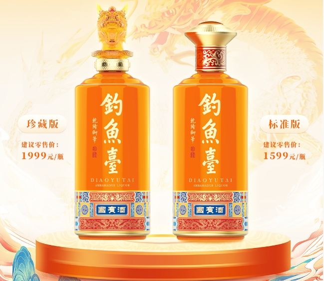釣魚臺國賓酒甲辰龍年生肖版共有 2 款,一款是釣魚臺國賓酒甲辰龍年珍藏版(建議零售價1999元/瓶),限量銷售1.2萬瓶;另一款是釣魚臺國賓酒甲辰龍年標準版(建議零售價1599元/瓶),限量銷售3萬瓶。