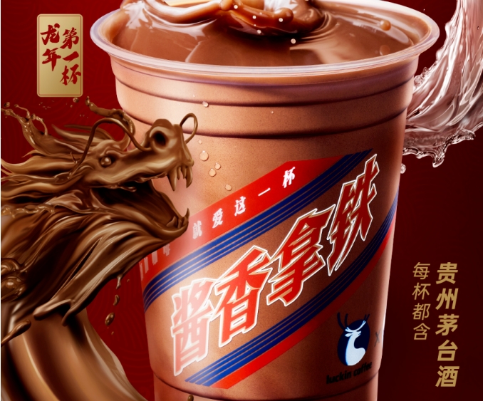 1月22日,瑞幸咖啡與貴州茅臺聯合發布的新品“龍年醬香巧克力”正式亮相。產品由經典53%vol醬香白酒融入絲滑厚奶,酒精度數低于0.5%vol。在微信小程序上可以直接下單,龍年醬香巧克力標價38元,可使用優惠券,18元即可購買。