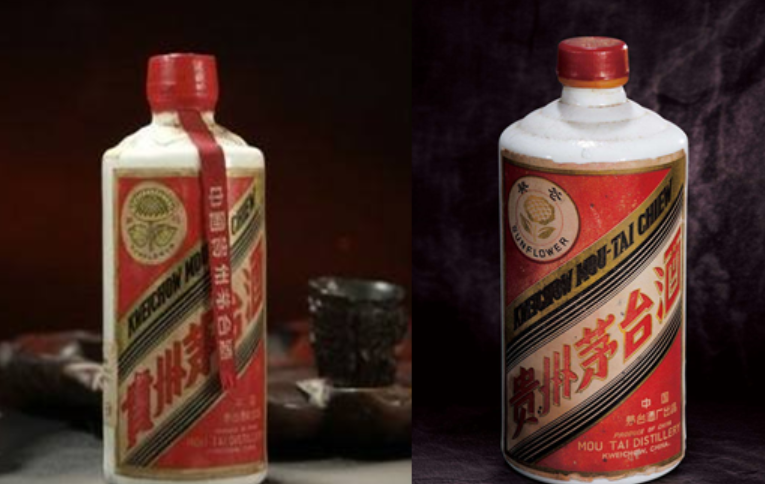 據資料顯示,“葵花牌”茅臺酒是茅臺酒廠一個較早且短暫使用的品牌,1967年宣布正式使用“葵花牌”,到1975年停止使用,“葵花牌”僅存在9年時間,且產酒數量很少,成為稀缺的酒類投資品種。“葵花牌”商標圖案分兩種,開始使用的是“大葉圖案”正面文字為繁體,大葉葵花存在時間極端。后來使用“小葉葵花圖案”作為商標使用。由于大葉葵花極少且時間較短,被業界稱為傳說,但在2012年西泠印社杭州春拍中,出現一個日本老人收藏的1967年的大葉葵花茅臺,最終拍出了50萬元的高價。